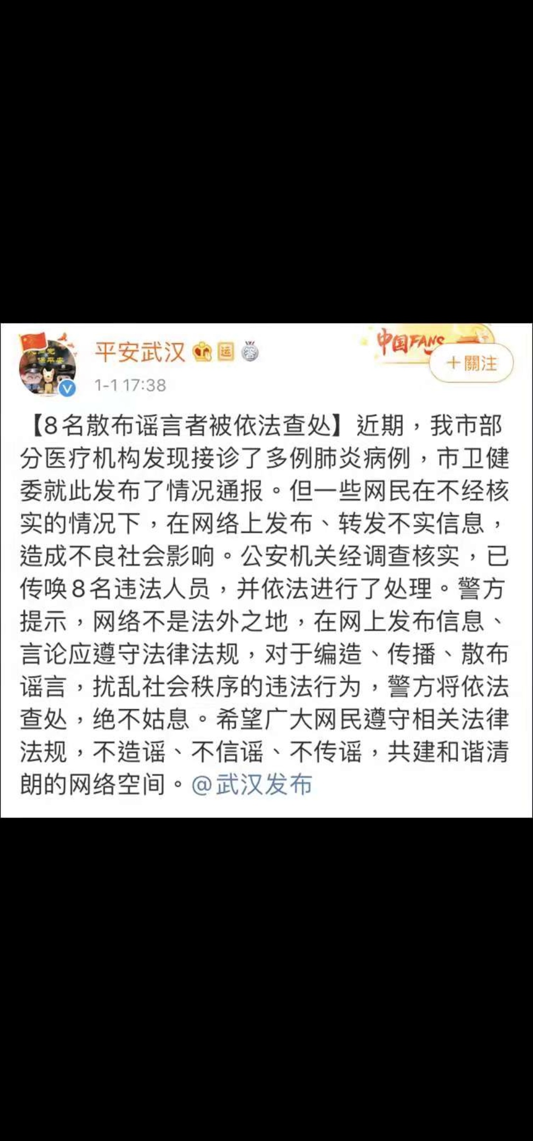 ctn 发表于 2020-01-24 09:45 网络不是法外之地,不信谣不传谣