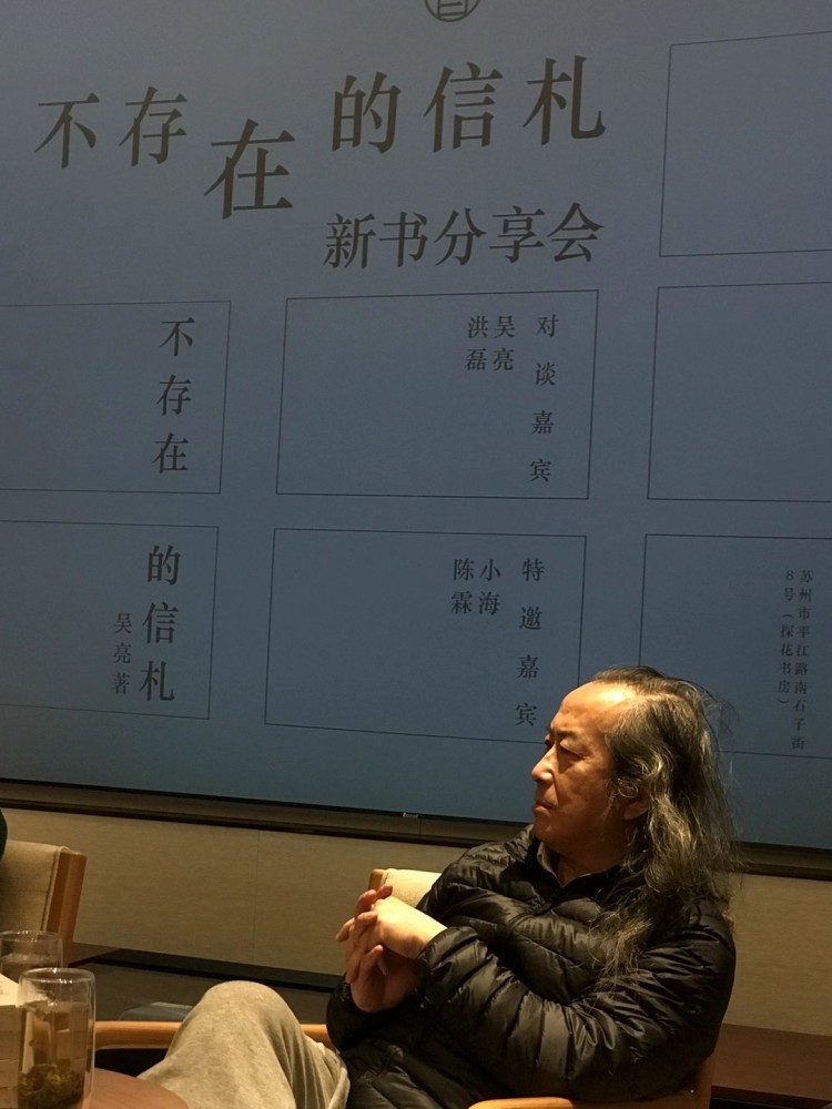 上世纪八十年代,吴亮的文学批评横空出世,单枪匹马成为文坛最雄健的声浪。九十年代开始,吴亮开始涉足当代艺术批评及策展,写下大量瞩目的艺术批评,和很多艺术家、作家有多封私信往来。近年来他开始创作长篇小说,接连出版《朝霞》和《不存在的信札》。日前,吴亮带着他不久前由长江文艺出版社出版发行的书信体长篇小说《不存在的信札》,在苏州冯梦龙书院和探花书房同多位嘉宾对谈。 吴亮 洪磊:唐代有传奇,再往前看,《世说新语》,其实都是故事。如果把《世说新语》看成一本小说的话,吴亮的小说跟他的形式有一些类同,它是有无数个片段组成,由状态组成了一个一本那么厚的一本书。 《世说新语》里,有一个人叫王子猷,有一天他要租一个地方住一段时间,他看到他房子边上有一块空地,命令人说你要给我种上竹子,有人就问了,你就住那么几天你要种竹子?然后书中是这么描写的,说他“嚣咏良久”,说“一日不可无此君“,就是说他每天都要看到竹子。同样是这个王子猷,有一天他突然在一个雪夜,想起了一个人,就坐船去看那个朋友,但是到了的时候已经是早上了,去了靠岸了,看到朋友在门口,他就立即命船夫回走。朋友说你为什么见到我不进来坐坐,他说我乘兴而来,我看到你了,我已经满足了,就回去了。其实吴亮写的很多故事,有类似的这种感觉与方式。 吴亮《夭折的记忆》里面,说他有一次开会,和钱理群,还有一个姓吴的三个人就住一个房间。然后住一个房间以后,他半夜醒了,就听到两个人打呼,一个是像船舱里面的机器的声音,持续不断在那打,然后钱理群就打得非常热闹。然后,突然钱理群就没有声音了,然后就变成另外那个人在打呼噜,就像一只船一样的在海洋当中慢慢地游荡,后来钱理群的声音突然哗又起来了。他就描述了这样的一个状态。 回到吴亮这本书,关于曼达的信是最多的,有三十多封。它里面的信的分类很多,有倾诉类的,也有片段的故事,但这个故事都不是很完整,但也有一些其他的关于一些艺术的讨论,思考的讨论以及哲学的讨论,还有宗教的讨论。等等这样的组成了这样的一本书。我们习惯的那种小说概念,比如说要看一个所谓完整的故事,像《红楼梦》它是一个家族的故事, 《水浒》是讲一帮强盗的故事,就是类似这样它需要一个完整的线索的故事,才被认为是一个小说。 1980年代相对比较开放,进来了大量国外的小说,我们看过魔幻现实主义、新小说,我们看到小说尤其是西方小说基本上是写状态。如果你要想找一个线索,或者是曼达跟谁在通信,或者是曼达又跟它发生了一个什么任何关系,几乎没有。我们看这个书不要想去发展成一个故事,就是一个线性的故事。他这个小说的组成,我觉得有一点像当代艺术。他挪用了他家里面私人藏的1000多封信,在这些信的里面模仿那些写信人的语气与句法,然后在进行想象和改造。 他这个书现在总共呈现了将近200封信,他本来的意愿是还要往下写,后来他就写不下去了,因为我觉得这是无所谓,都可以随时就停止的工作,为什么?它本来就是一个碎片的叠加。吴亮认为我们现实的生活就是一个碎片化的。当通信这样的一个方式被中断以后,人们的生活其实变得更加碎片化。有的人关心美国大选,不是因为因为他真的热爱美国或者赞美美国,而是因为这个信息来得太容易了。 我小时候在一个部队大院长大,我的世界就那么大,院子,我们小时候看觉得很大,现在去看觉得很小,就那么一个空间相对是静止的。现在信息来得更多,就跟你就八竿子打不着的事情,你会很关心。所以这个就是我们生活的一个困境。吴老师的方式就是用他这样的一个形式样式来构成当下的一个对应。《世说新语》的很多故事也都是碎片化。它是通过那么多碎片化来构成他们时代的文化状况,以及当时人的精神的追求。吴老师的小说也是以这样的一个碎片化的方式来记录。这些信,是他不经意写的,慢慢就形成了一本书。 吴亮:洪老师主要讲的碎片当时不是这么说,叫笔记。笔记小说。 从1980年代到2000年这段时间,我收藏了大概2000封信件。我就想这个东西怎么以一种比较好的方式保存下来。有一天我开始想象一个故事——一个很大的房子,拆迁了,新的老板进来了,跑到楼上,发现这房子全都是空的,没多漂亮,然后看到有的两个柳条框装的信件。我想象我是这个人,我想小说是这么来开始,打开一个箱子,全是发霉的味道,全是信。而且一看,信里面涉及的就不止一家人,肯定是好多家人曾住在这个很大的房子。他就每天看看这个信,然后看了以后他就陷在里面。写作当中,我也有个计划,因为假如说这个人一直在整理这个信,在整理故事的时候,他不是要疯掉了?他总要有自己的生活,所以他的生活里必须要有些人介入,最好是有女人,然后这两个就聊聊天了,你在干嘛?我在收我的信,然后两个就是朋友了,然后他就讲当下的事情。 所以这里面有两层东西。 我不是为了写个形式,而是这个写作形式是带出来的。首先从我的一些信和我的生命的流逝中来,因为我看到信了以后,就有一种紧迫感。那么因为种种原因就不能再写下去,然在写到一半的时候就终止就结束了,那么剩下的有关信的信息,剩下的信,我想还是要把它处理掉,我要把增项全部消灭掉,然后把虚构的东西变成一个真实。就像中国的历史也是一样的。你烧掉了就拉倒了,