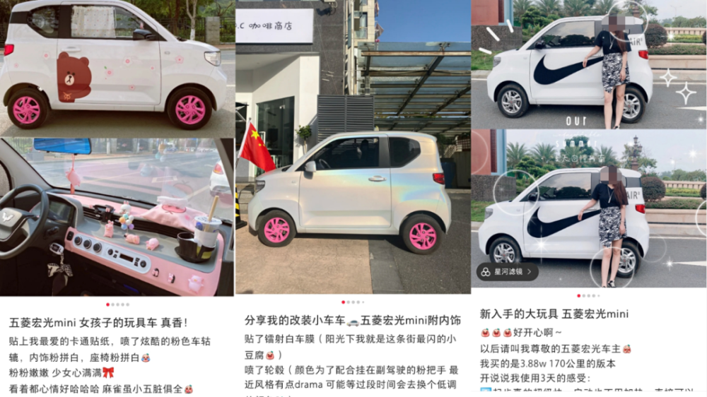 来源:金融八卦女(ID:baguanvpindao) 作者:文刀 没想到吧,打败特斯拉销量的不是“造车三杰”蔚来、理想、小鹏,而是剑走偏锋的五菱。宏光MINI EV是真的卖得好,就是没让五菱赚到钱…… 这些天上海车展,汽车圈出了不少热闹新闻,其中又以两件事的讨论度最高。 一件是特斯拉女车主维权,最后被保安给拎着手脚提了出去。据悉,这位张女士行政拘留期满,已于今天上午解除拘留。 另一件事是五菱又出“神车”了,这次是宏光MINI EV敞篷版。 这款车型一经展出,迅速引爆舆论热度,现在它已经有了诸多噱头傍身,比如“年轻人的第一台电动敞篷”、“00后人生的第一辆敞篷车”。 专门去问了一个去现场参加车展的汽车媒体朋友,他是这么形容的: “五菱真是太会了,相比之前各种改造版的‘老头乐’,敞篷才是真正的万人迷啊。” 1. / 上万网红,在小红书上改造五菱神车 / 其实说到五菱,可能很多人的第一印象还是“秋名山神车”。 殊不知五菱的“神车”之路一直在开挂,比如从去年开始,一辆总价不超过5万块、外形酷似老年代步车的新能源汽车,迅速在小红书、抖音等社交平台上蹿红,它就是五菱的宏光MINI EV。 小红书是众所周知的网红、名媛炫富重灾区,对于她们而言,晒出来的车不说是百万的宾利、劳斯莱斯这个档次,最起码也得是BBA级别才能拿得出手。 宏光MINI EV凭什么成为她们的新宠? 答案其实挺简单的,就是把这款车变成了一个大号的玩具,满足了网红们动手DIY的乐趣,从几千块到几万块,就能完成改装。 拿入门级玩家来说,只需要花几千块,就能完成全车贴车膜,或者车贴,再下单一些自己喜欢的内饰,一辆少女心满满的小汽车就改造完成了。 而高端版玩家的改装花样就多了。 首先全车改色肯定是必备的,接下来就是一些自由发挥项目,什么星空顶、大眼灯、音响之类,必须都安排起来。 看看改装后的熊猫配色,和小红书官方的联名改造款等等,谁能想起来宏光MINI EV裸车的样子呢? 可以说,改装几乎成了所有宏光MINI EV车主的共同乐趣,有媒体曾报道: “有多达70%的用户会对自己的车进行改装。” 当然,宏光MINI EV的爆火,不仅仅光靠车主们的改造、晒车,更离不开五菱官方的神助攻。 比如宏光MINI EV面世不久,就和喜茶来了一次梦幻联动,出了联名改装车型,大概是个女孩看了都得心动。 不仅如此,宏光MINI EV还先后在西太湖国界音乐节、成都的“CEA潮流文化展”等活动现身。 出入场合全是年轻人喜欢的音乐、潮流文化的活动现场,这种跨界营销做多了,一举成功打破了“宏光MINI EV是老头乐”的刻板印象,还直接贴上潮流的标签,追求潮流的年轻人更抵挡不了了。 今年3月,五菱还先后在上海、广州等地举办“五菱宏光MINI EV改装展”,让车主们来了一次集体晒车的机会。 ▲五菱宏光MINI EV上海车展;图片来源:小红书@浮生若梦 前有五菱高手面包车漂移,现有五菱盟主迷你车改装。 可见对于宏光MINI EV的车主们而言,它早已不仅是一台代步车,也不只是成年人的潮流大玩具,而是上升到了社交工具的层面,所以火了也是意料之中的事儿。 如今,在小红书上,有关“五菱宏光mini改装”的笔记达到了1w+篇,浏览次数已经超过了3000万次。 2. / 五菱式营销: “人民需要什么,五菱就造什么”/ 但宏光MINI EV只是五菱这两年推出的火爆产品的其中之一。 疫情期间,五菱凭借生产口罩冲上热搜,还一举登上了今年春晚,成为当天的最热的话题之一。 去年螺蛳粉火了,五菱又去跨界食品行业生产螺蛳粉,看这高端大气上档次的包装礼盒,难怪被网友称为“螺蛳粉中的奢侈品”…… 还有去年,五菱迅速推出的地摊“神车”成功刷屏,还借此概念上演了股价一天暴涨120%的奇迹…… 虽说五菱标榜自己是“人民需要什么,五菱就造什么”,但五菱式营销的精髓,其实无外乎于两点:一边不断地蹭热度,一边去迎合一部分消费群体推出新的产品。 那作为一台裸车酷似老年代步车的车型,宏光MINI EV想迎合的是哪部分群体呢? 其实从上文的内容,不难看出五菱这次想迎合的是年轻人、Z世代、甚至00后。 而这一点也得到了官方的盖章。在接受媒体采访时,五菱的品牌与市场总监周钘曾坦言, 因此,五菱为这款车定位了三个人群——妙龄少女、精神小伙和小镇贵妇,只有这样,才称得上是“人民的代步车”。 妙龄少女、精神小伙、小镇贵妇……这三个词一说出来,是不是瞬间就画面感十足。 前段时间,五菱也在一场采访中给出了宏光MINI EV车主的用户画像: 从全国购买宏光MINI EV的人群看,用户年轻化趋势显著,20-30岁用户占比40%,白领占比30%; 宏光MINI EV接近60%都是女性客户,其中“85后”的占比达到70%。 ▲图片来源:《电动汽车观察家》 果然基本符合官方的定位人群,当然也能看出,还是年轻女性的钱最好赚。 因此吃到了迎合女性用户营销甜头的五菱,如今在宏光MINI EV这个产品上,愈发坚定地走主打女性市场的营销策略。 比如最近推出的宏光MINI EV马卡龙配色,都是女生喜欢的配色,自然受到了追捧。 据五菱披露的数据,这款车型预定上线14天,订单已突破了3.6万辆。其中85后年轻用户占比高达86%,而其中女性车主占比达到了65%。 还有趁热打铁推出的宏光MINI EV敞篷版,还没上市,就已经让不少年轻人惊呼“真香”,赚足了噱头。 3. / 拼命迎合年轻人的五菱, 赚不了年轻人的钱 / 既然宏光MINI EV这么香,五菱是不是已经赚得