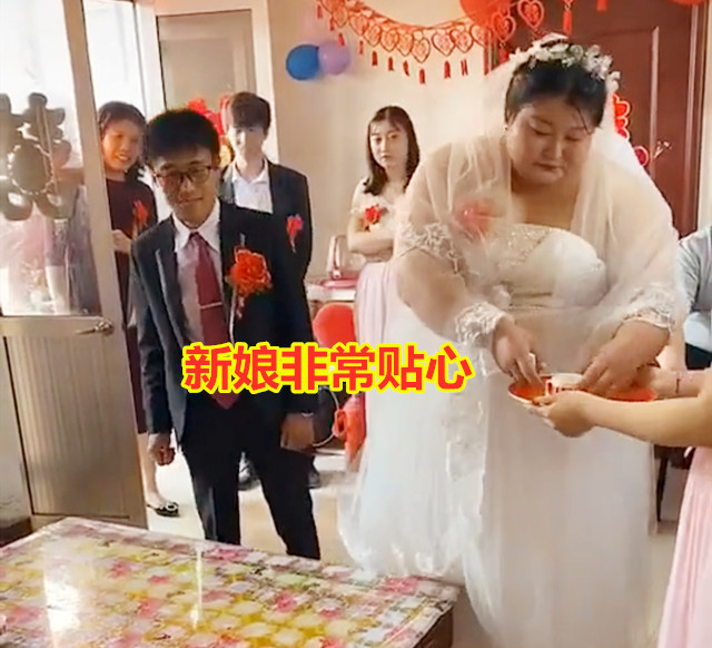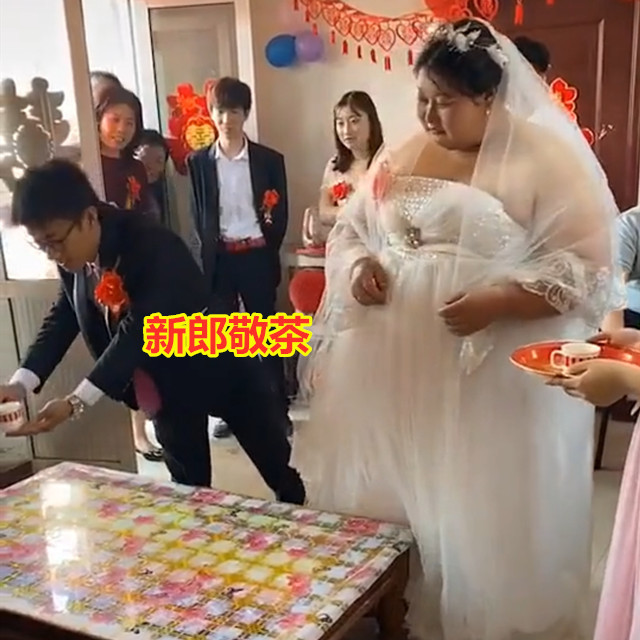 农村有句老话:胖女七分财,旺夫又镇宅。 现如今大家的生活水平不断提高,大家吃得越来越好,身材自然也就“水涨船高”变得越来越富态,变得越来越丰满。 然而,大众眼中是“以瘦为美”,不少体型较为丰满的女生常常会感到非常自卑,在婚嫁市场也成为“滞销品”,不太好找对象。 江西上饶,一名高胖新娘嫁给瘦小男子,婚礼现场指挥新郎给自己的父母敬茶,新郎胳膊有新娘2个大腿粗,堪称“最萌体型差”。 俗话说郎才女貌,各方面条件相近的新郎和新娘才般配,才是世人眼中的天生一对。 然而情人眼里出西施,在现实生活中,很多夫妻的组合搭配却并不是世人眼中的标准,好女配懒汉,好男配丑女的搭配比比皆是。 虽然他们的结合不被别人看好,但他们却偏偏能幸福过一生。 感情这种事情讲究的是一个眼缘,看对了眼,对方的一切在自己眼里都是甜的。 而婚姻这件事除了眼缘之外,还要看对方的人品,结婚选对了人才能幸福一生。 这名瘦小男子娶高胖新娘,接亲的时候引起了不少人围观,街坊邻居都赶来看“胖丫头嫁人”。 看到这么多人围观,新郎有点局促不安,双手都不知道往哪里放了,还好有老婆在他身边,给了他很大的力量和勇气,让他觉得非常心安。 到了敬茶的环节,新郎要挨个给岳父岳母敬茶,新娘从伴娘的托盘中端起茶递给新郎,告诉他面前的是谁,怎么称呼:这是咱爸,这个美女是咱妈。 新郎按着新娘的吩咐做,果然没有出错,将两杯茶顺顺利利敬给岳父和岳母喝下,没出洋相。 不少网友忍不住笑道:这个新郎娶到宝了! 生活不就是这样夫唱妇随,平平淡淡的吗? 人们常说娶妻娶贤,这是千百年来总结出来的经验教训,家有贤妻夫无祸事,贤妻富三代是很多男人的血泪教训。 然而尽管有很多这样的警世名言,依然有不少男人在挑选老婆时非常肤浅,只看重外貌而不看重人品,虽然开心了一时,却痛苦了一世。 这个瘦小的男子娶了一个人高马大的老婆,而这个微胖的女子嫁给了一个矮小瘦弱的男子,在别人眼中,他们是不般配的。 然而他们就是看对了眼,最终携手走入了婚姻的殿堂。 一旦结了婚,再美的外貌也要经历共同生活的摩擦,再好的感情也要经历柴米油盐的磋磨。 婚姻讲的是磨合,磨合不好,再好看的外表也会变成“中看不中用”,再好的感情也经不起一次又一次的争吵。 旁人眼中般配的婚姻不一定幸福,旁人眼中不般配的婚姻也不一定不幸福。 幸福与否在于结婚的两个人,在于两个人的共同付出。 对于这件事,你有什么想说的呢? 0 ?8 `* u# f& T$ S: R% U* b