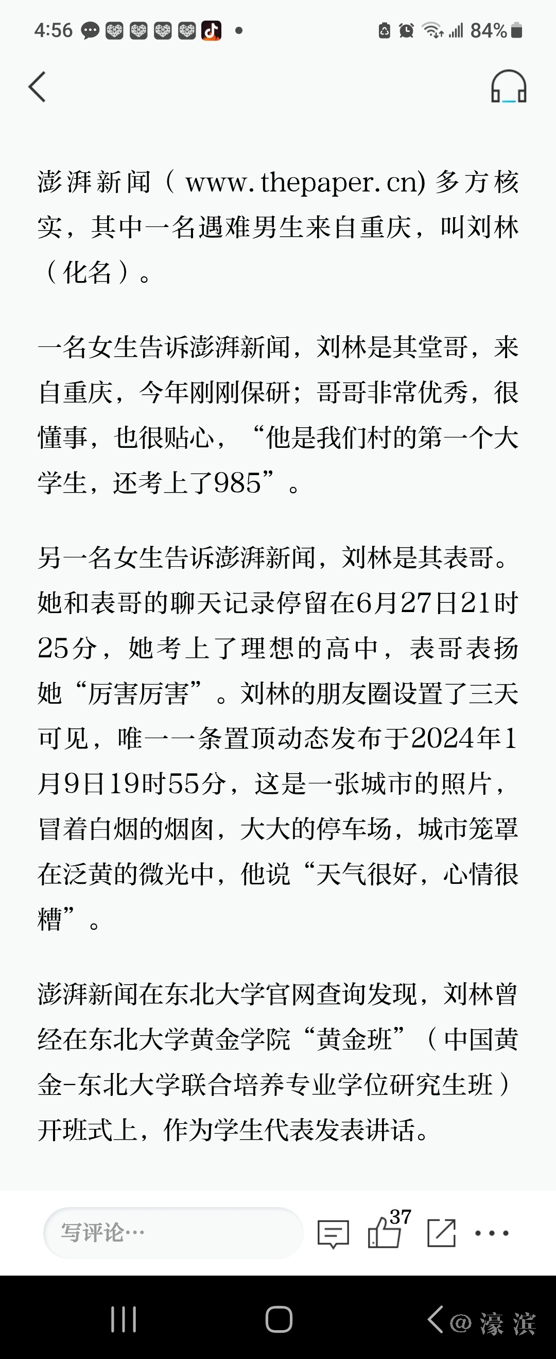 据南方都市报此前报道,23日晚,东北大学一名矿物加工工程专业的学生告诉记者,遇难者是大三本科生。受访学生表示,其曾去过事发选矿厂,平时浮选区员工也就二三十人,实习参观时学生和老师比浮选车间员工多。其还提到,如果是7个人站在格栅板上,板子可能会受不住。该学生还表示,浮选槽的垂直高度有十几米,里面是矿浆,“类似于泥石流,人掉进去动不了。”