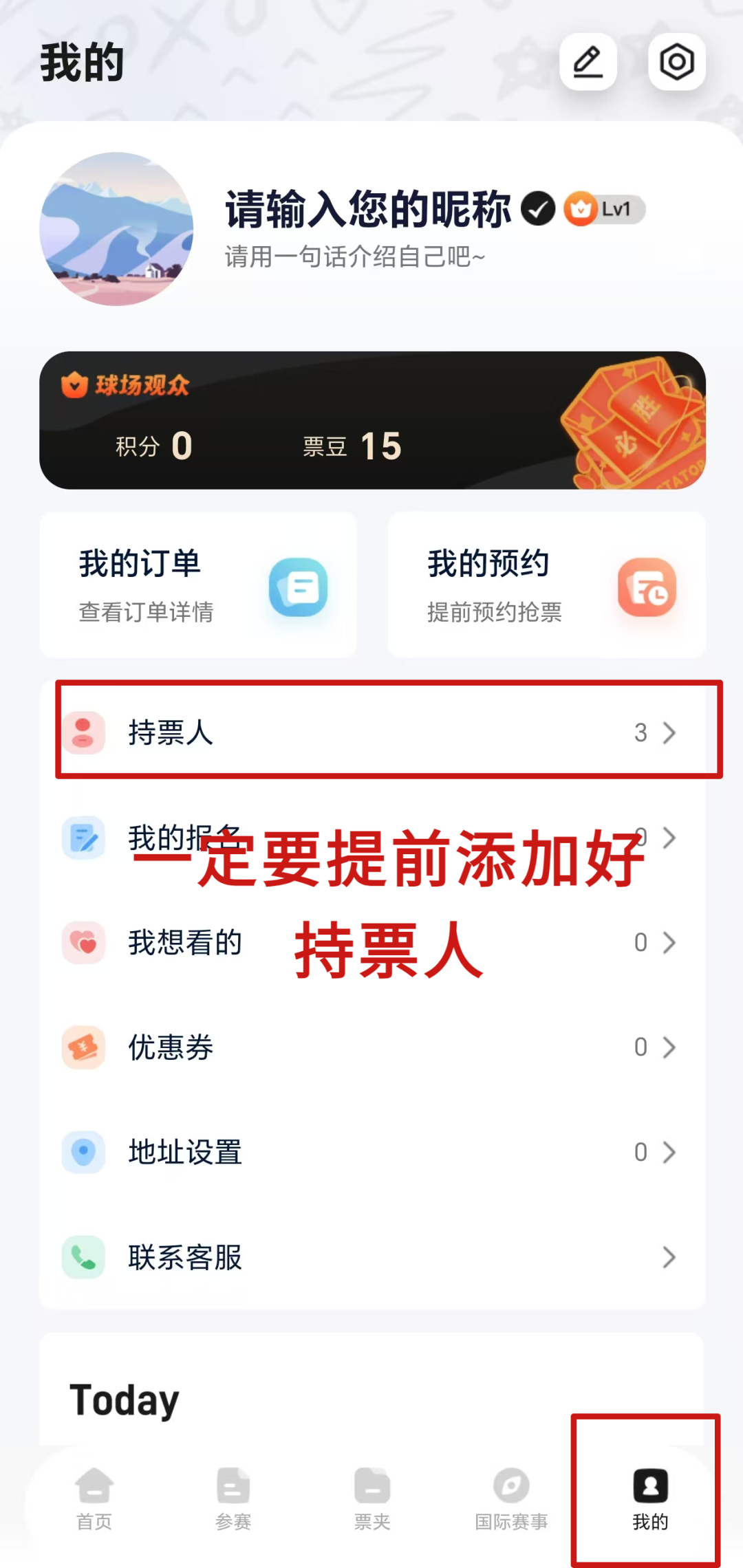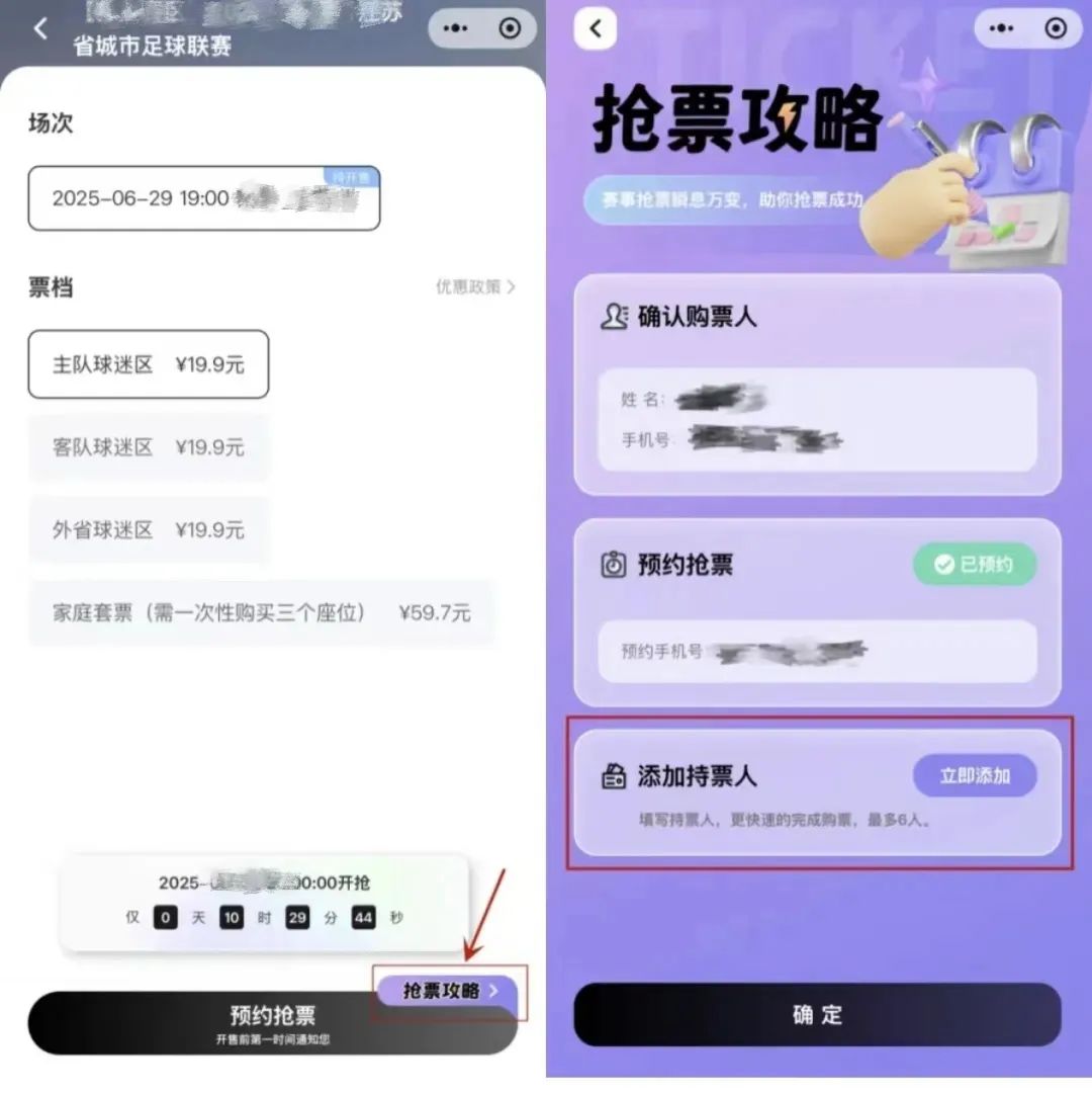 ②进入页面,点击“抢票攻略”,确认购票人。