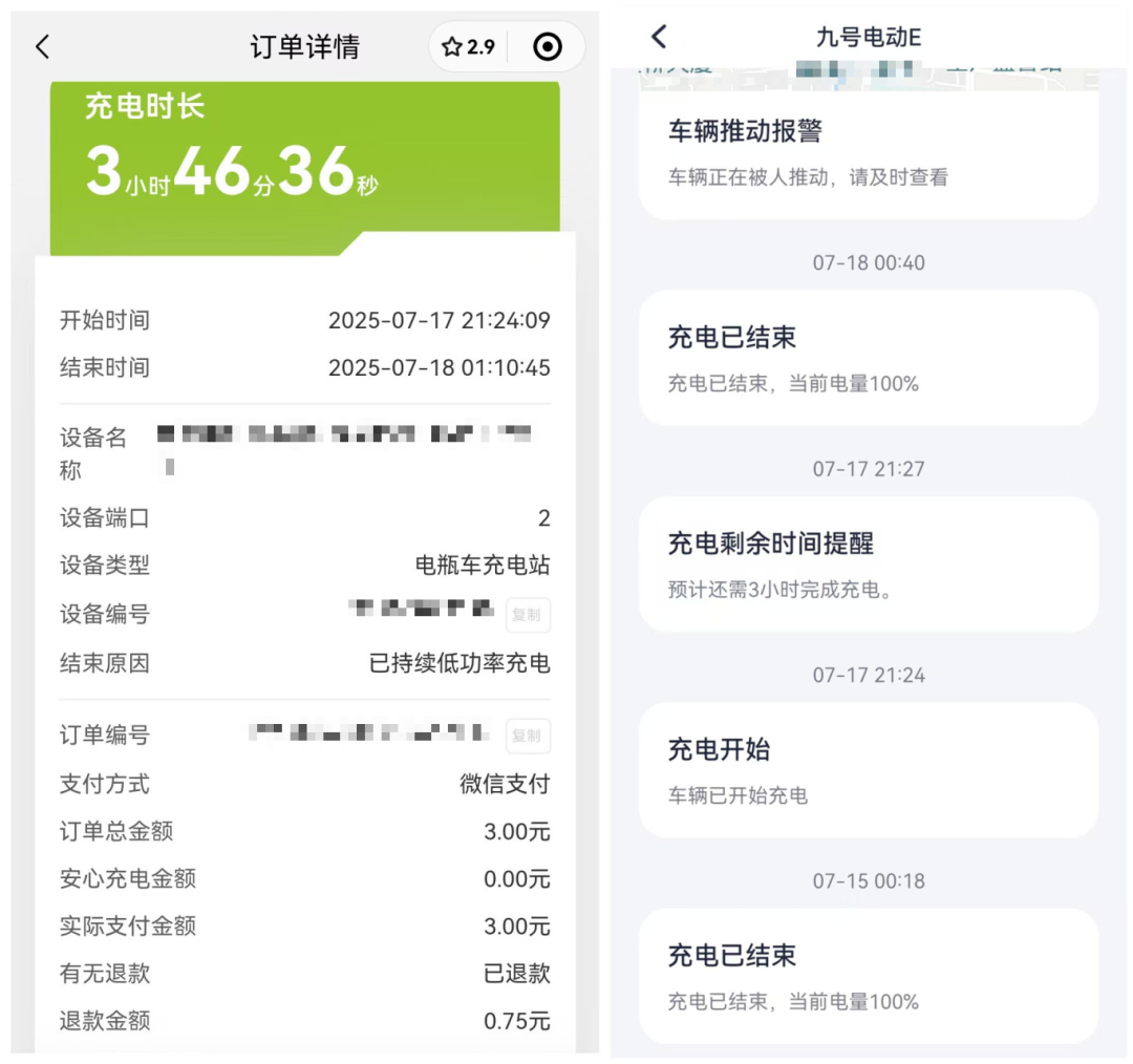 发现桩小盟自动断电时的费用高于手动断电时的费用