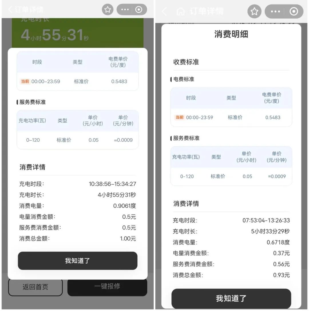 以及桩小盟小程序显示的收费标准、充电时长计算下来
