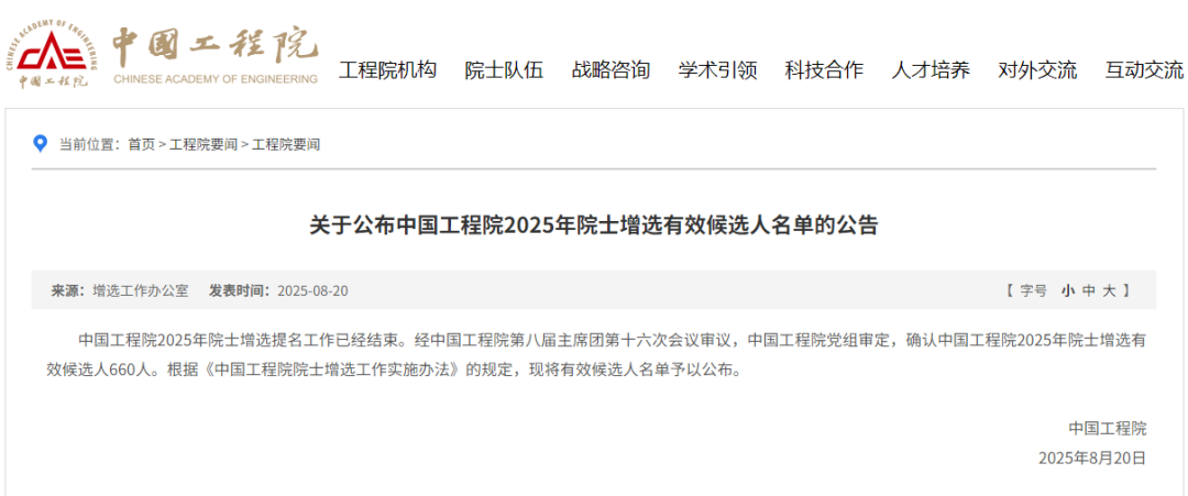 20日 中国科学院网站 中国工程院网站分别发布公告 公布2025年中国科学院院士 增选有效候选人名单 和中国工程院2025年院士 增选有效候选人名单 南通发布经多方了解 我市至少有16人入选上述名单 此次入选中国科学院院士和中国工程院院士增选有效候选人名单的南通16人中,除了南通大学王建浦籍贯是浙江温州之外,朱建勋、王凯、陈志龙是南通市人,曹宏斌、陆延青是如皋人;戴子高、王伯根、蔡正银是海安人;邢卫红、陈猛是如东人;袁正宏、陈卫忠、顾冲时、施季森、李风华是启东人。 据中科院、中国工程院网站公告信息显示:戴子高工作单位为中国科学技术大学,陈志龙来自中国人民解放军陆军工程大学,顾冲时、施季森分别来自河海大学、南京林业大学,王伯根和陆延青都来自南京大学;陈猛和袁正宏都来自复旦大学;蔡正银的工作单位是水利部交通运输部国家能源局南京水利科学研究院,曹宏斌来自中国科学院过程工程研究所,邢卫红来自江苏大学,朱建勋来自南京玻璃纤维研究设计院有限公司,王凯来自中国城市规划设计研究院,陈卫忠来自中国科学院武汉岩土力学研究所,李风华来自中国科学院声学研究所。 中国科学院院士增选有效候选人名单和中国工程院院士增选有效候选人名单是两院院士增选工作中一个阶段性名单。它象征着很高的学术荣誉和认可,是通往院士殊荣的的“首张入场券”。 按照相关规定,两院院士增选每两年一次,必须由院士或学术团体提名。有效候选人名单公布后,还需要经过学部初选、第二轮评审、全体院士投票等多轮无记名投票,并通过中国科学院以及中国工程院主席团审议确认后报国务院备案。入围两院院士增选有效候选人名单距离最终当选院士还有多轮极其严格的评审和投票过程。 据统计,截至目前,从南通共走出54名两院院士。 南通0 |