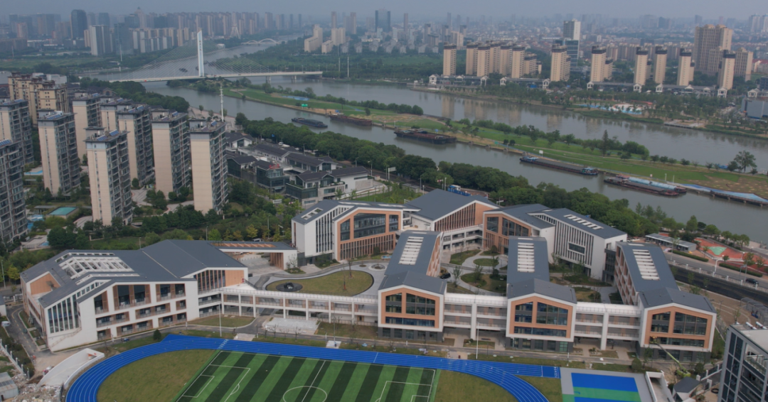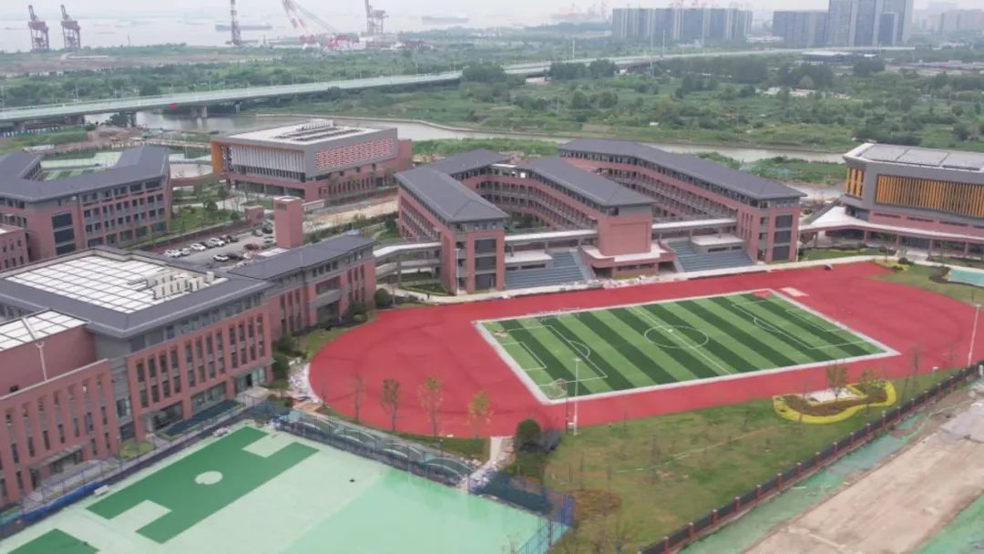 学校配套完善:配备6间休息室共180个床位,供首批新生午休;食堂可容纳900人同时用餐;挑高设计的体育馆配备电动大窗,保障孩子舒适运动。 目前 两所新校区已全部准备就绪 正以崭新面貌 迎接新学期的到来 暑期里,市区多所学校开展“焕新”行动,沿河桥小学也利用暑期完成了操场改造工程。曾经的天然草坪雨天易积水,影响体育活动,如今已焕然一新:朱红色塑胶跑道、浅绿色人造草坪足球场,为即将开学的孩子们带来无限期待。 沿河桥小学创办于1907年,承载了几代社区人的记忆。但因建成较早,原有操场设施陈旧,存在安全隐患。今年,该校改造工程被秦灶街道列入年度民生实事项目,经多方协调、专项拨款,最终在开学前顺利完工。 南通市沿河桥小学副校长 季飞:街道不仅支持操场改造,社区还为接送家长新建临时停车场,有效缓解停车难问题。为确保操场能在开学前投入使用,街道、学校和施工方通力配合,抢抓工期。整个操场除了划分出两块标准足球训练区,还实现了边界柔化处理和排水系统全面升级,真正做到了安全、美观与实用。